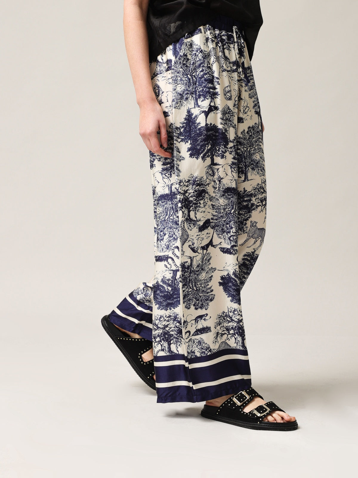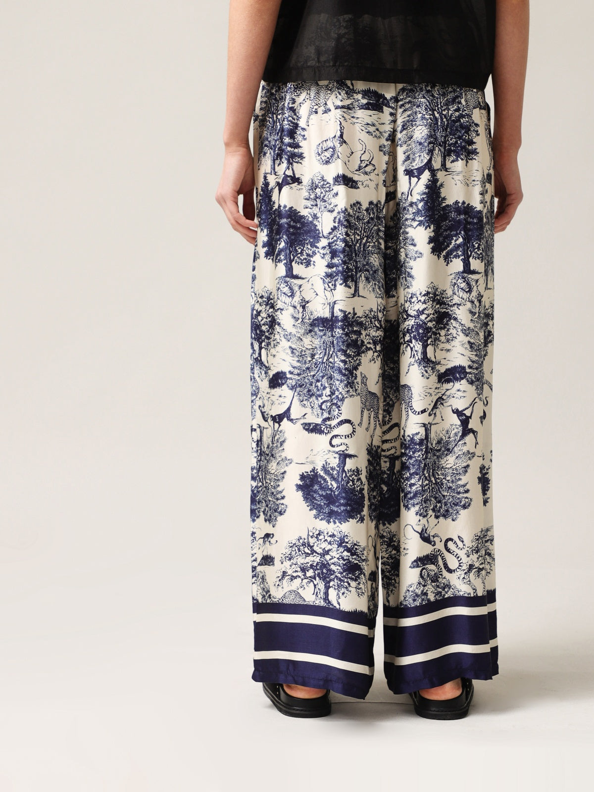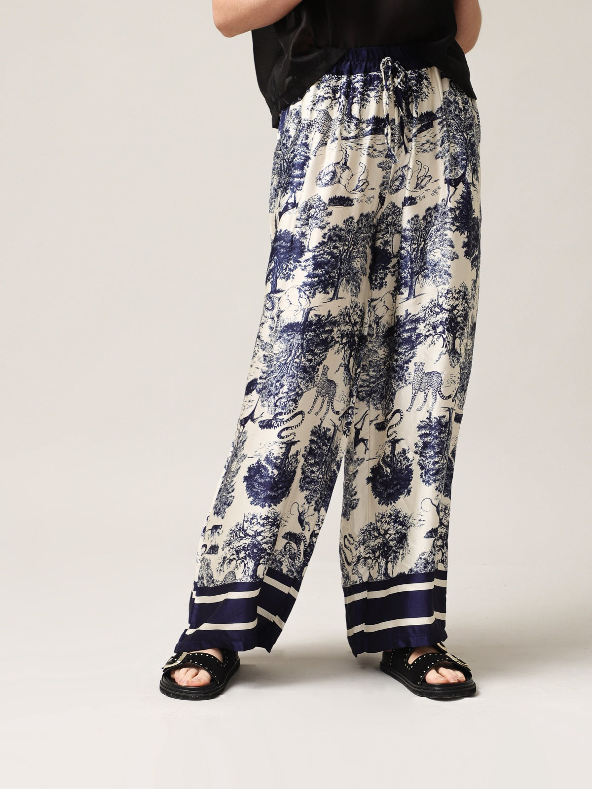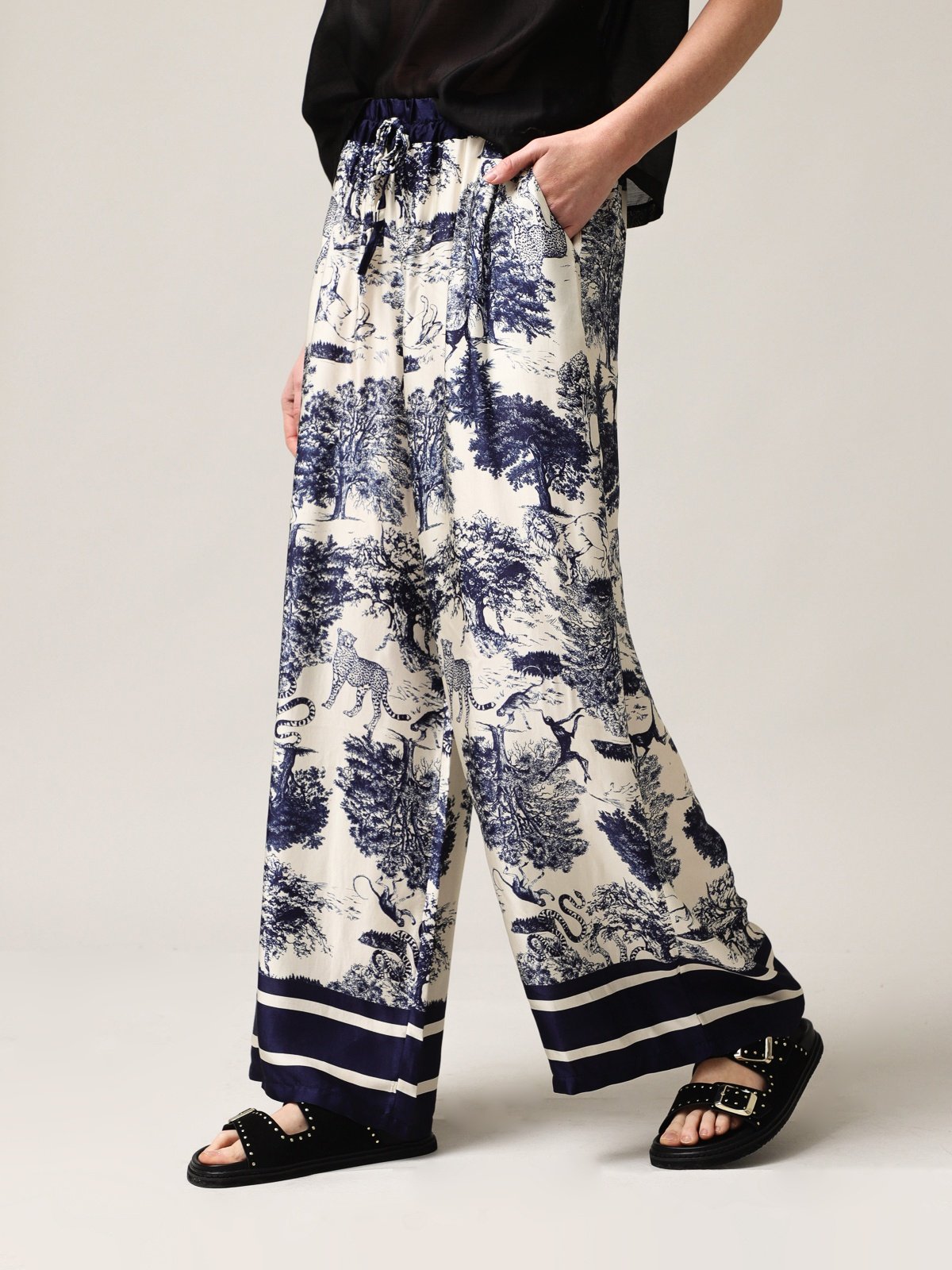 Moteriškos plačios kelnės su šilku