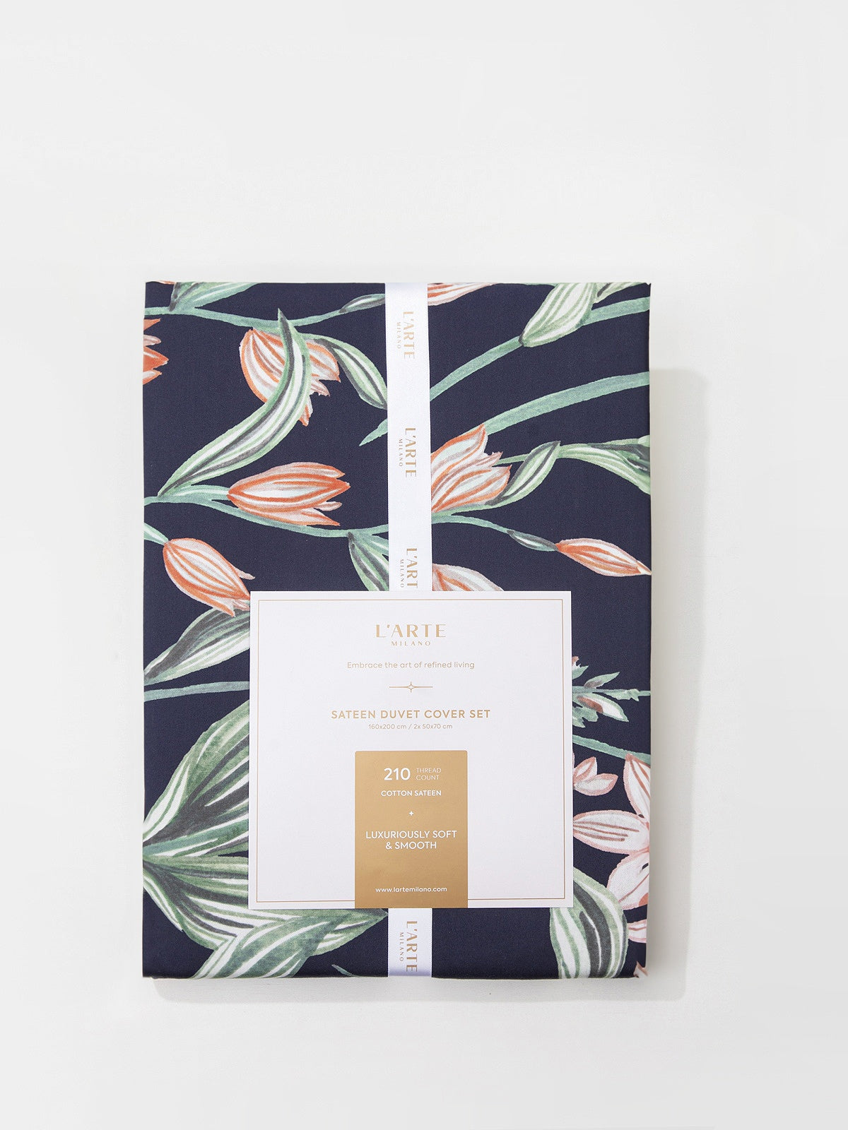 L’ARTE MILANO satino patalynė yra pagaminta iš ypač kokybiško, 210 siūlų tankį turinčio, natūralaus medvilnės pluošto.