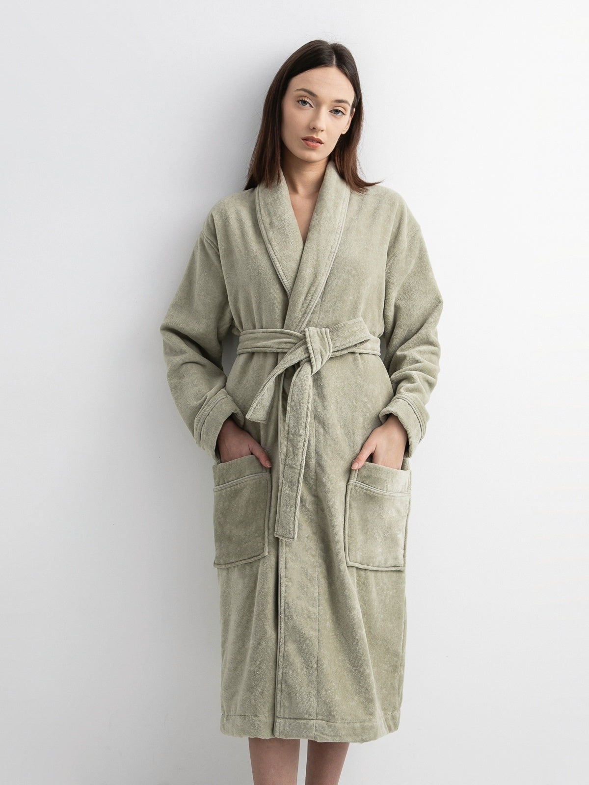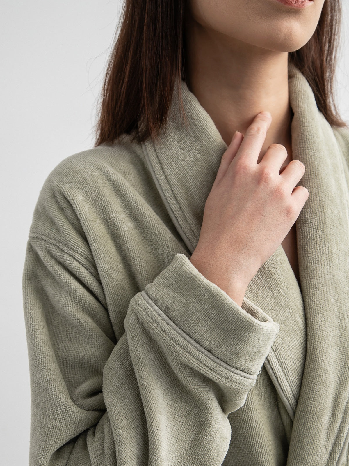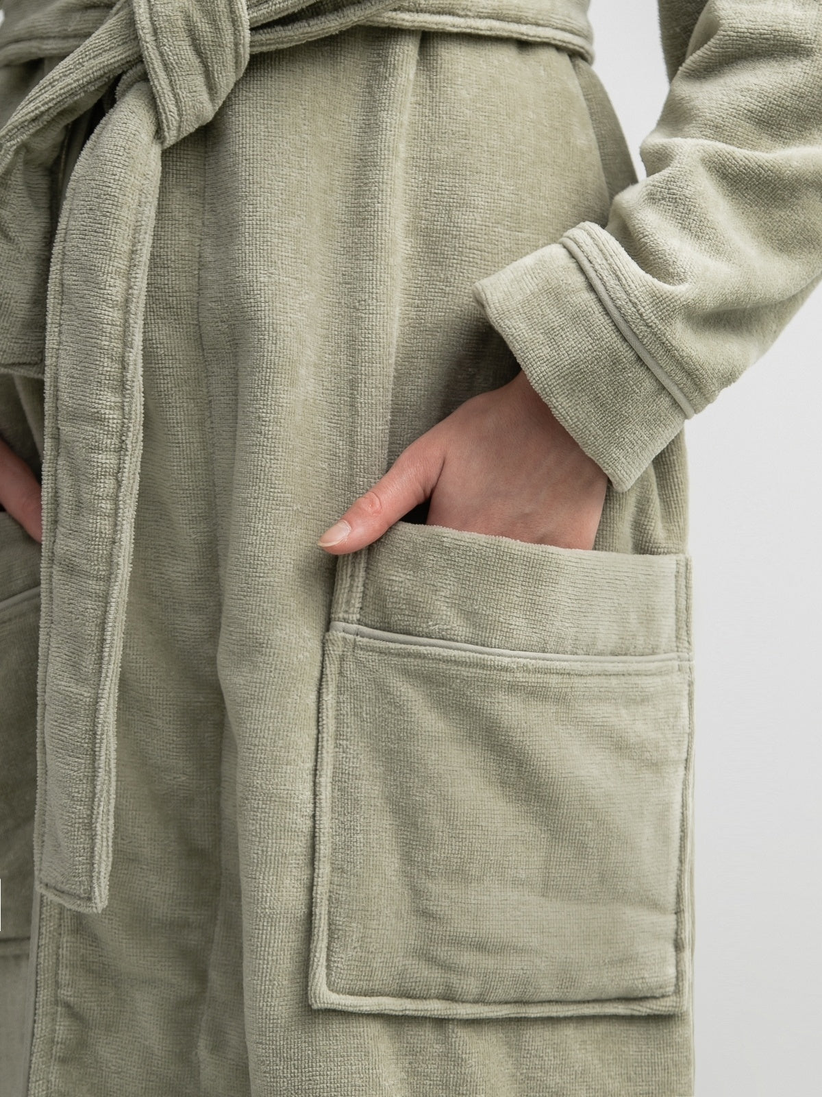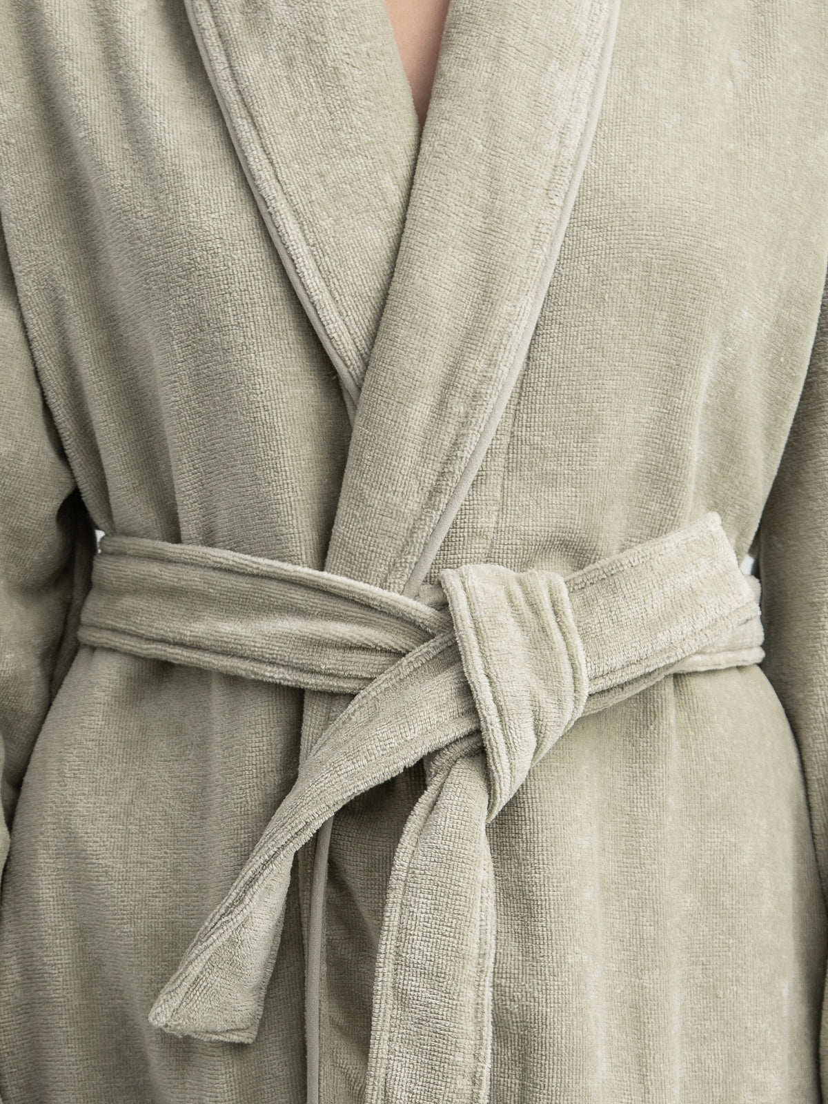 Veliūro chalatas su šaline apykakle